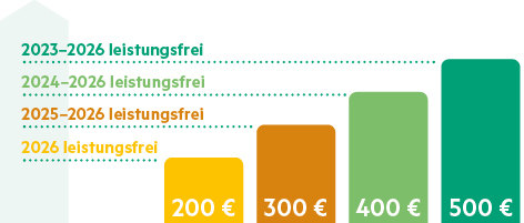 | Drei leistungsfreie Jahre (2024 - 2026): | 400 Euro |